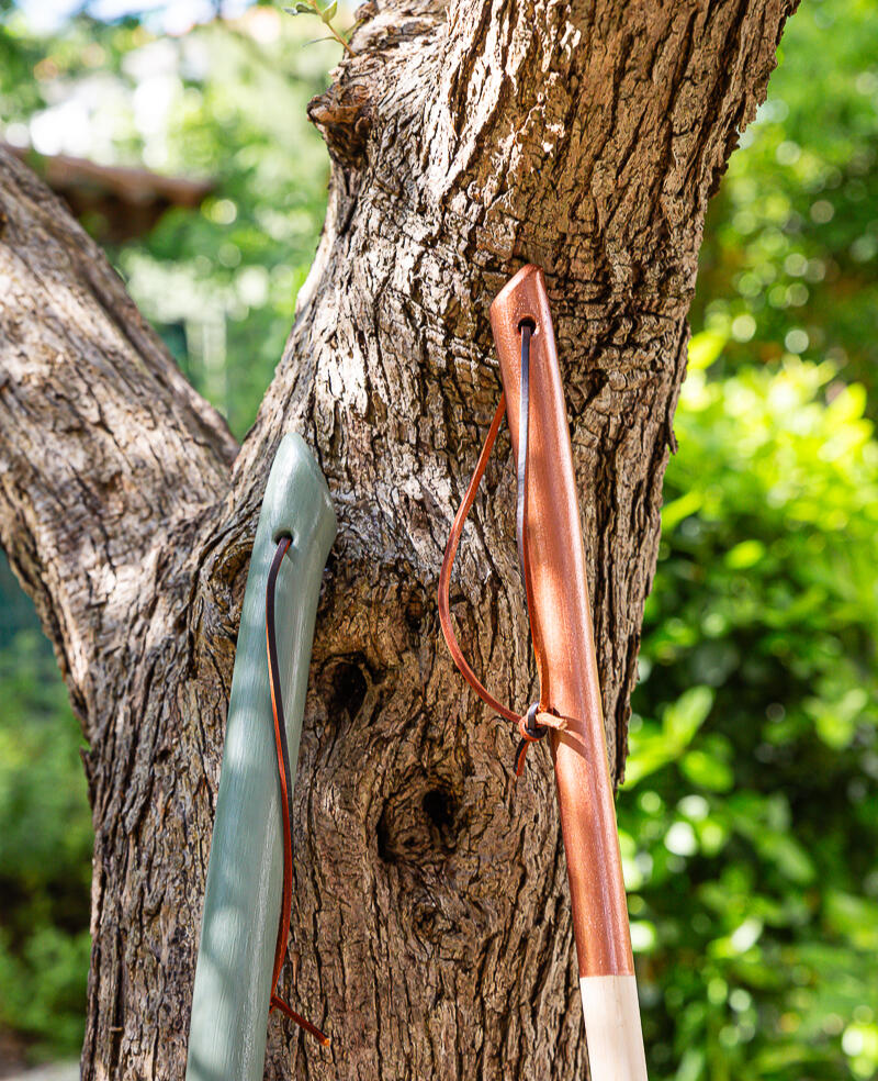 MA DEMARCHE :▼Ma volonté est d'être capable de créer des objets en utilisant le minimum d’énergie autre que la mienne. Sans doute par soucis de respect de la planète, mais également par challenge personnel. Je trouve que les vraies valeurs d’un artisan, diplômé ou non, résident dans sa capacité à se passer d’assistance et que le mérite est bien plus apprécié si l’on est capable de partir d’une feuille «blanche».Tout part du bois. De sa présence graphique, de sa matière vivante. Ses fibres, ses veinures, ses nuances racontent une histoire que je prolonge à travers mes objets. Mon approche est graphique, presque chorégraphique. Je puise dans ces tracés naturels pour faire naître une sensation de mouvement, de tension, de fluidité. Je sélectionne des pièces de bois expressives, adaptées à ce que j’ai en tête, que j’oriente et travaille pour révéler leur force intérieure. C’est ce dialogue entre forme et matière qui donne à chaque bâton, planche ou autre projet son équilibre, son âme, sa justesse et la singularité de chaque pièce.Le bois n’est jamais neutre. Il vit, il réagit, il garde la mémoire de l’arbre. Même scié, poncé, façonné, il reste habité. Il faut composer avec ses tensions invisibles pour créer un objet fiable, qui tiendra dans le temps, en usage comme en beauté. J’ai donc décidé de m’équiper du strict minimum pour parvenir à concrétiser mes objets. Je fonctionne par étape bien distincte pour chaque conception.